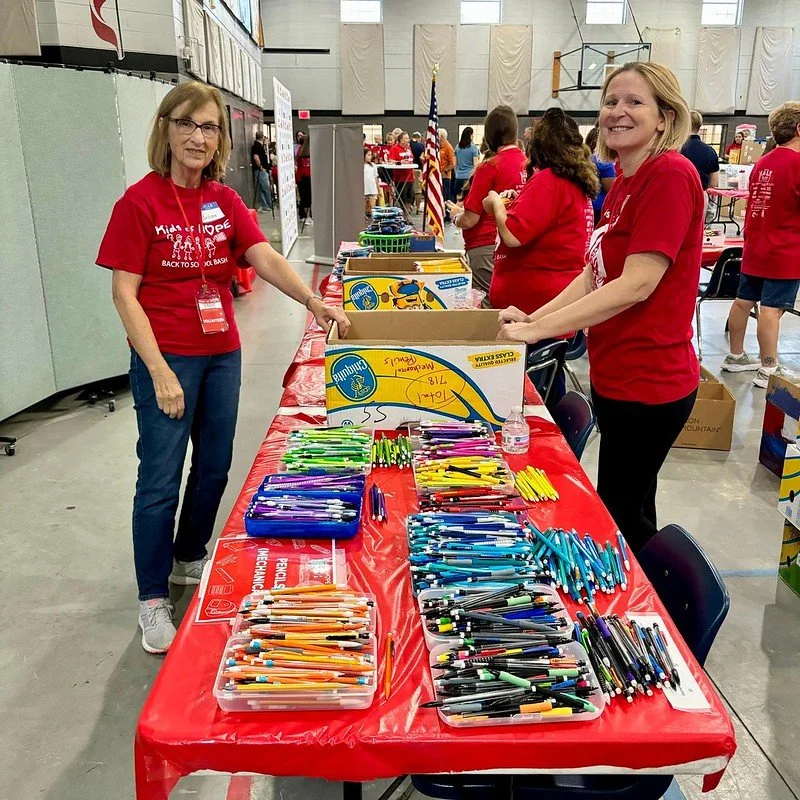 Right before school starts each year, HOPE hosts the Kids of HOPE Back to School Bash, where pre-registered children of families in crisis are able to pick out everything they need to start their school year off right. The day of the event, each child chooses a backpack, all school supplies they need, socks and underwear, a set of toiletries, and receives a free vision screening. This event presents over 200 volunteer opportunities each year. Partner resource agencies attend all day, providing additional community information for our client families. In 2024, we served 170 households and over 360 children.